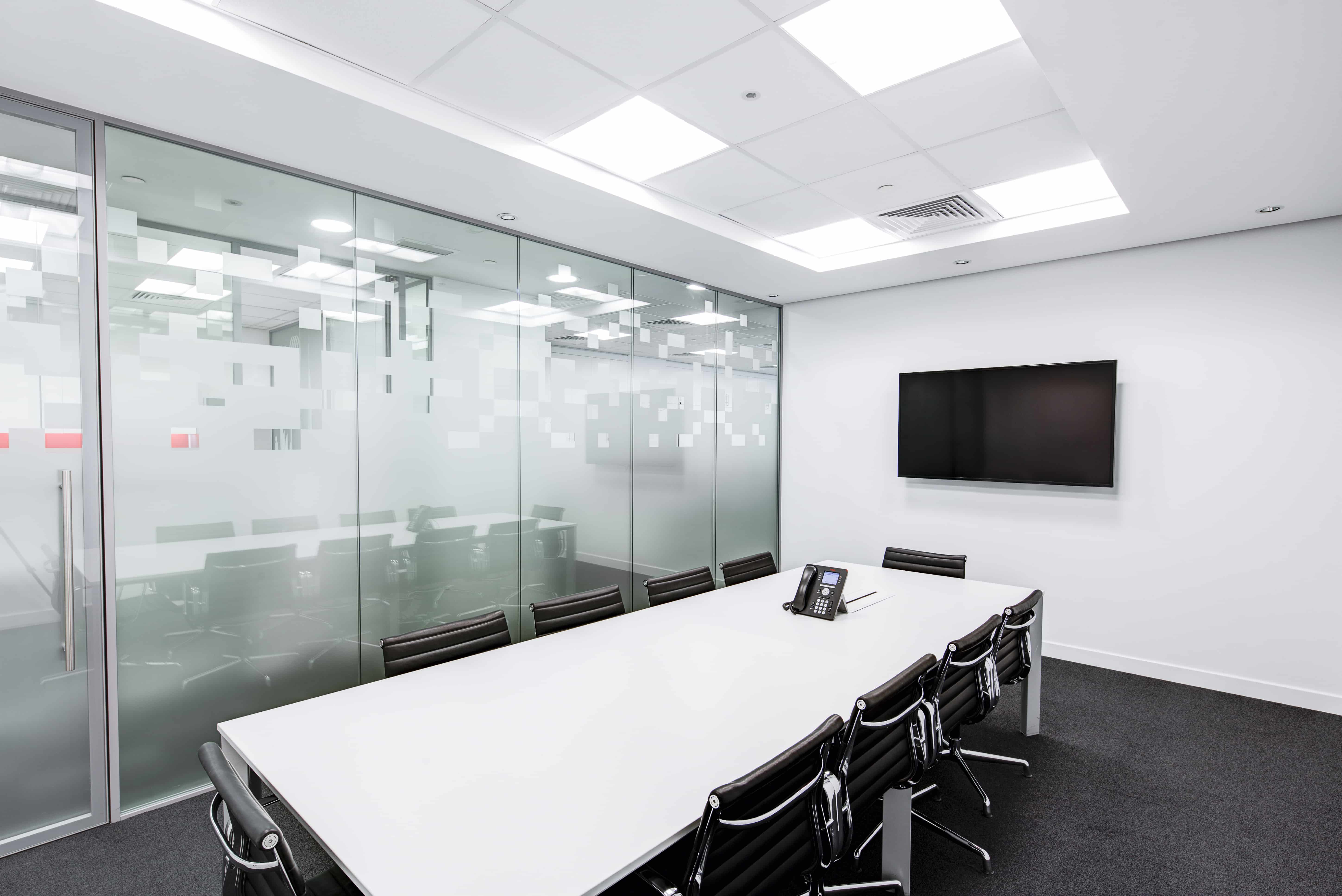طراحی داخلی دفتر کار با فضایی باز و انعطافپذیر. استفاده از رنگهای خنثی و نورپردازی هوشمند برای ایجاد محیطی آرام و بهرهور.